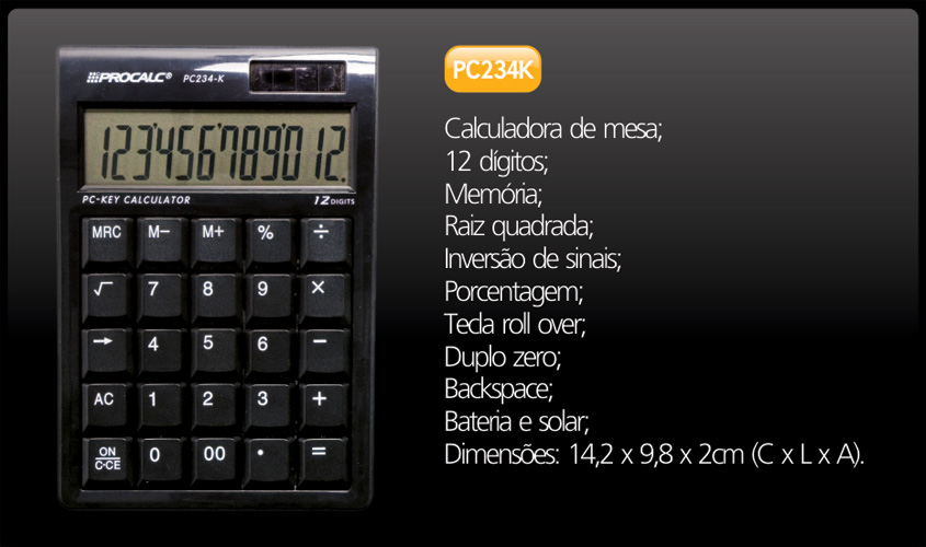 Compartilhar Produtos Relacionados 27/02/2020Calculadora Zeta ZT 712 12 Díg.Leia mais 30/07/2014Calculadora Procalc LP25Leia mais 30/07/2014Calculadora Científica Procalc SC-128Leia mais 30/07/2014Calculadora Truly 808A-10Leia mais